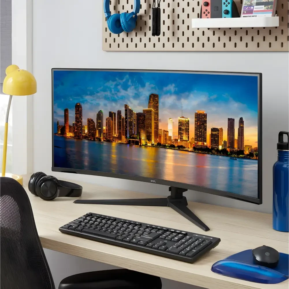 Elevate your workspace or gaming setup with the Curved Ultrawide Monitor, designed to deliver an immersive, panoramic viewing experience. With its 34-inch, 1440p resolution display and 21:9 aspect ratio, this monitor maximizes screen real estate, allowing you to multitask with ease or dive deeply into games and movies. The 1800R curvature wraps around your field of vision for more natural, comfortable viewing, reducing eye strain during extended sessions.